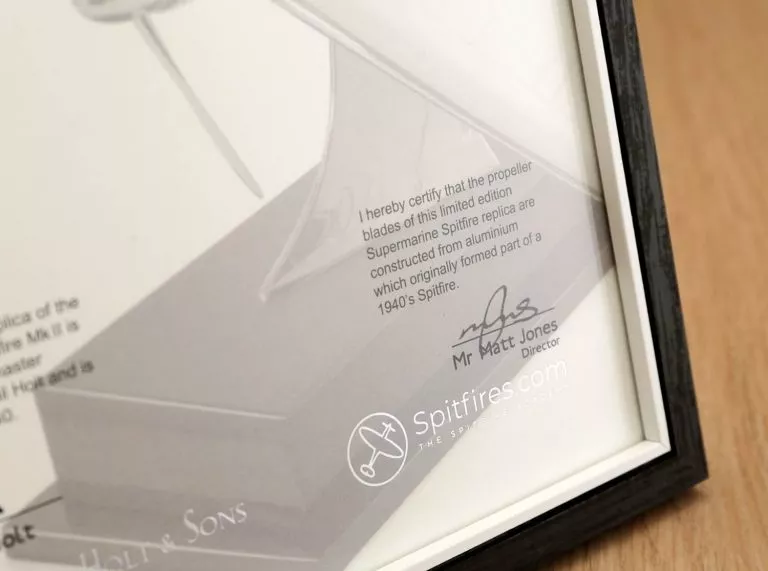 limited edition sterling silver Spitfire Mk II replicas. Each model has a propeller and